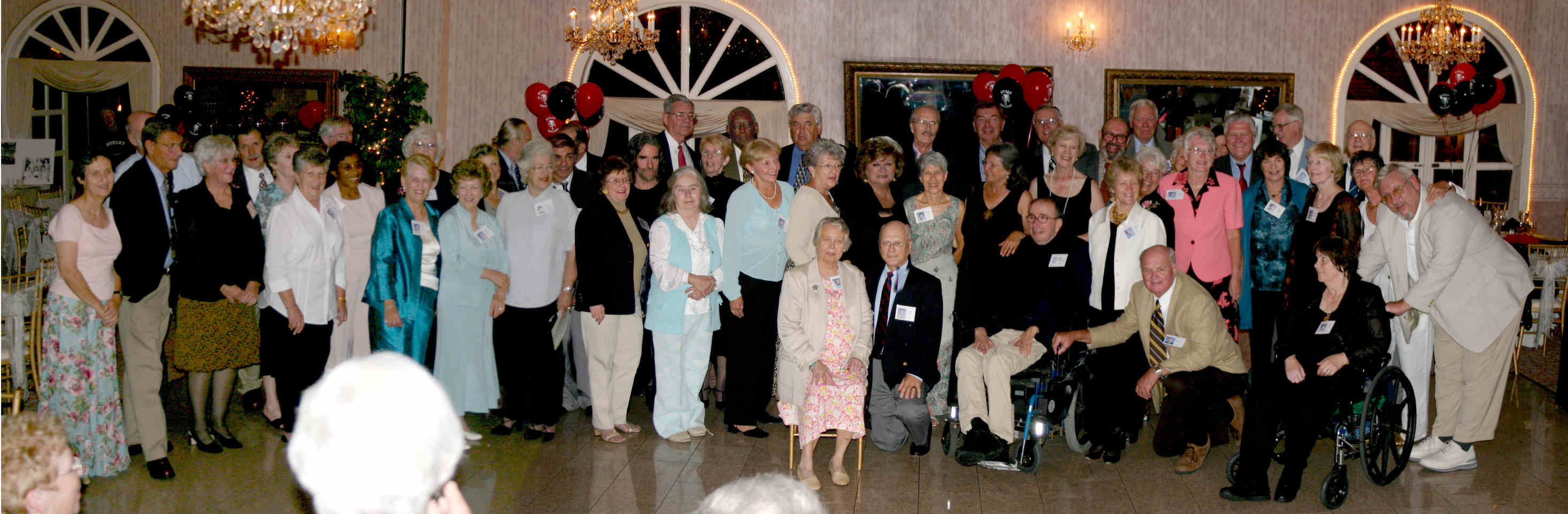 The Nyack HS Class of '55, 50th Reunion Group Photo. Taken at the Nyack Grande in Nyack, NY, Sept. 24, 2005.Pass your cursor over the faces for the names.