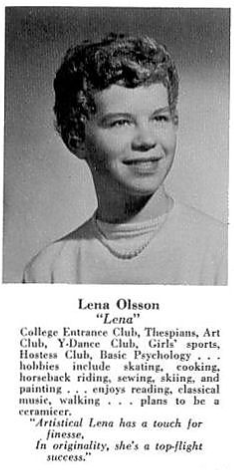 Lena Olsson The information below was shared by Sheila Finan, Lena's step-sister, and also a member of our class.
